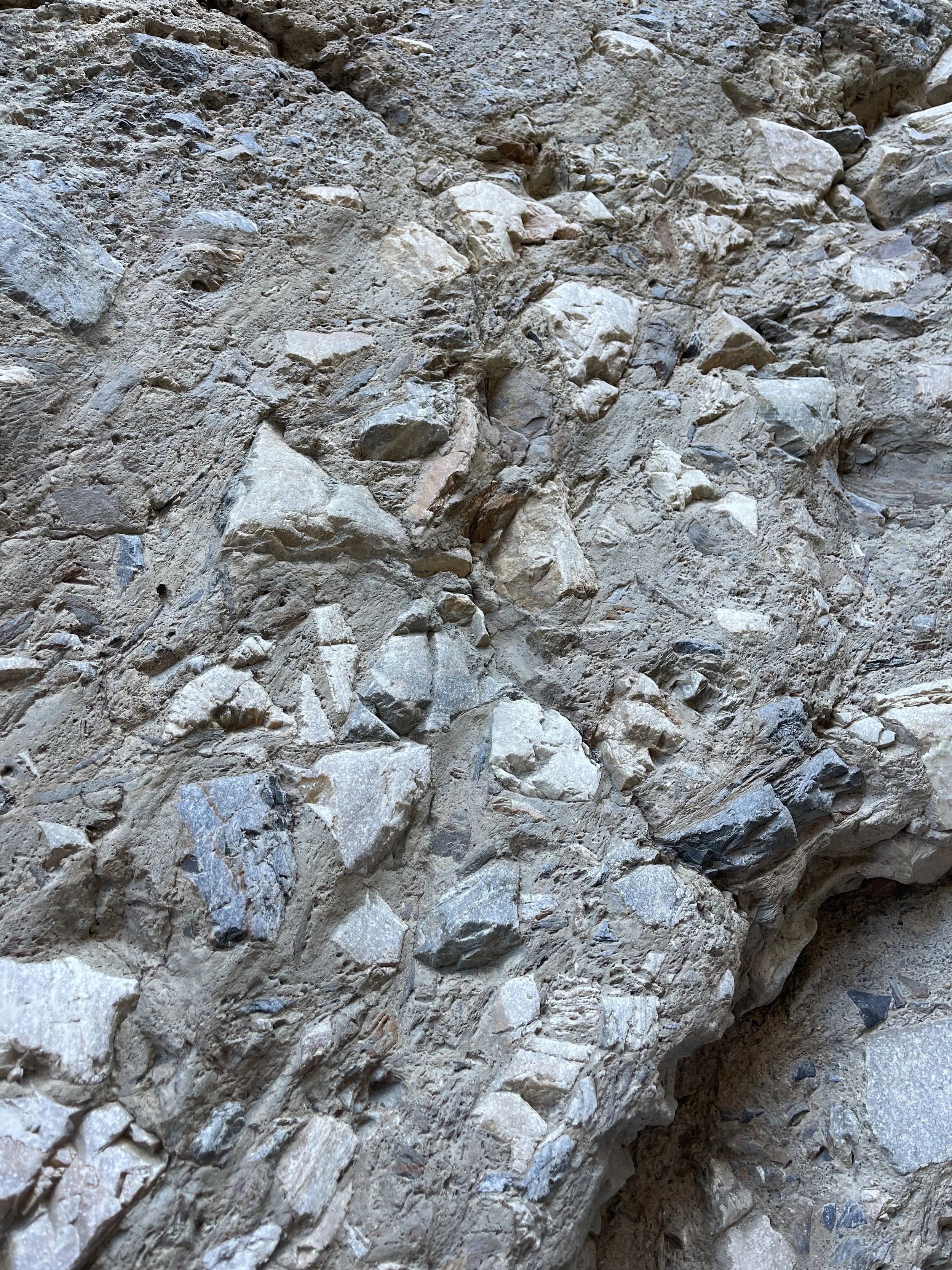 Mosaic Canyon (ala DVNPN) is made up of layers of rocks and silt of myriad types, all lumped together into one colorful mass, a humongous dough interspersed with rocks of all shapes and colors and sizes. Obviously, no one had to work too hard to come up with the name.
