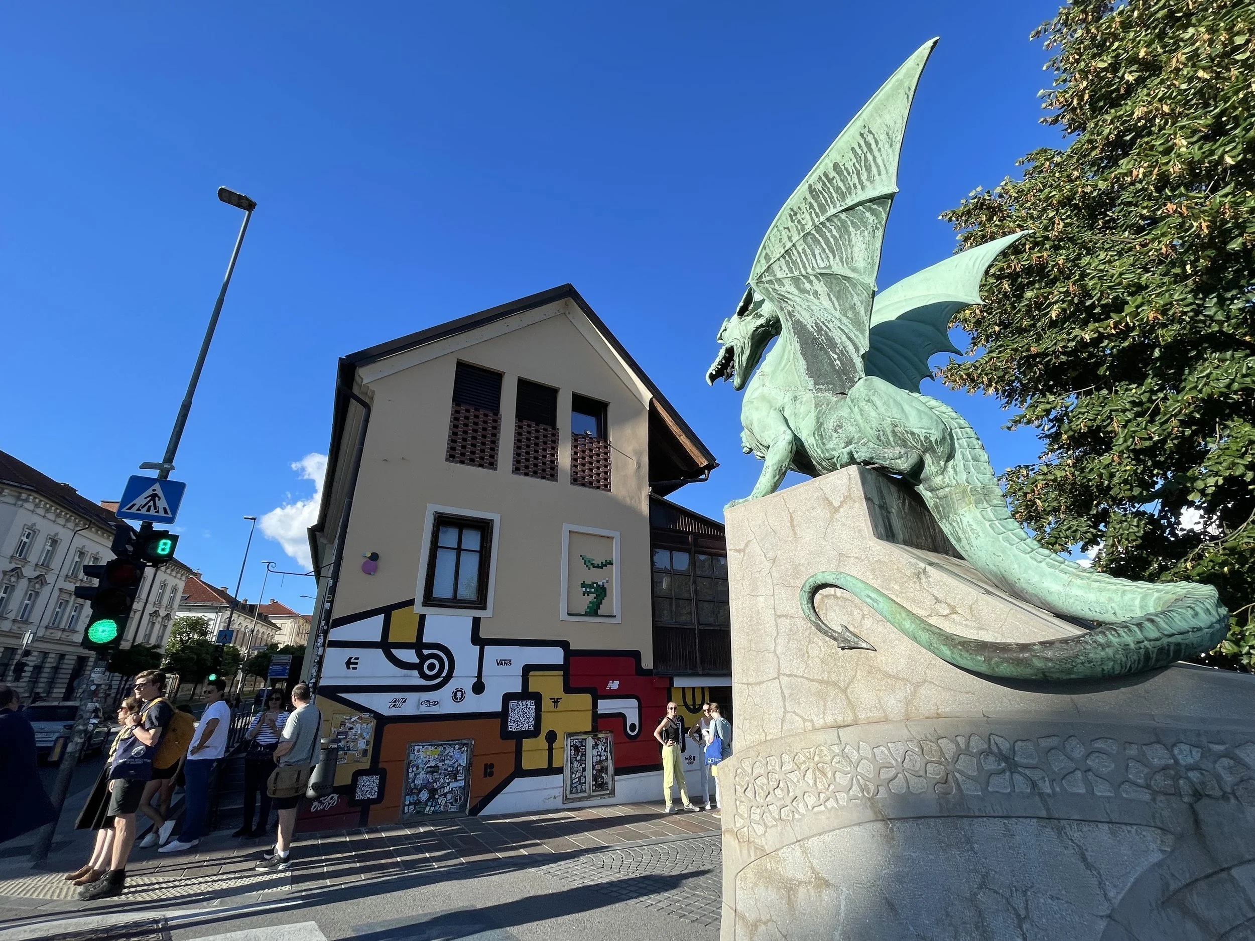 We finally arrived in Ljubljana — it took me a while to realize “j” just makes an “i” sound — and were really tempted to just call it a day. However, the blue skies beckoned. We took a taxi to the city center and explored this charming city — they had dragons and Flash Invaders!