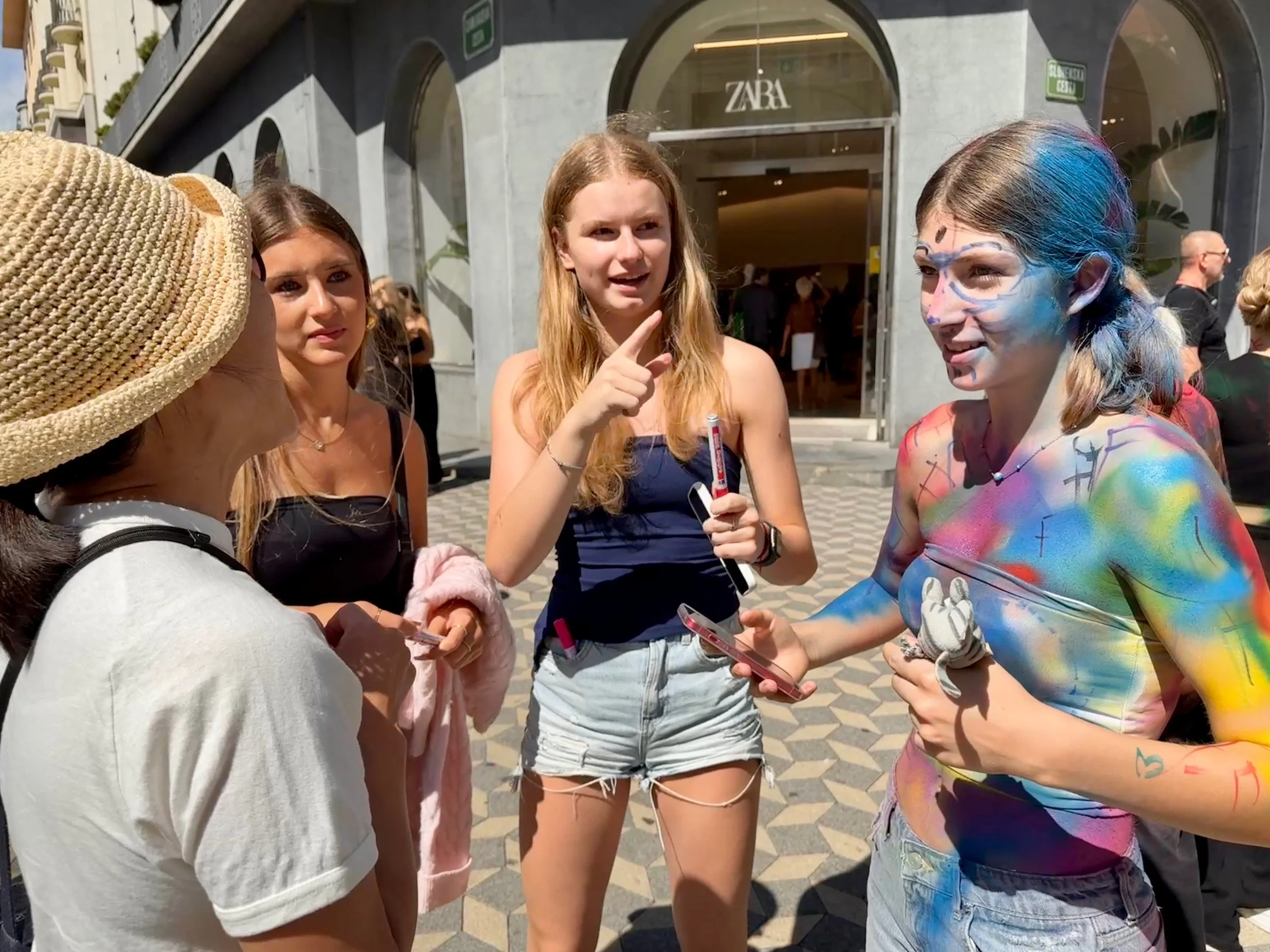 Bands of teenagers were roaming in packs, dressed in black and white. Upon closer inspection, some seemed to be graffiti canvases, sprayed in all kinds of colors. Closer still, we saw and smelled the cans of spray paint they pointed at happy victims.