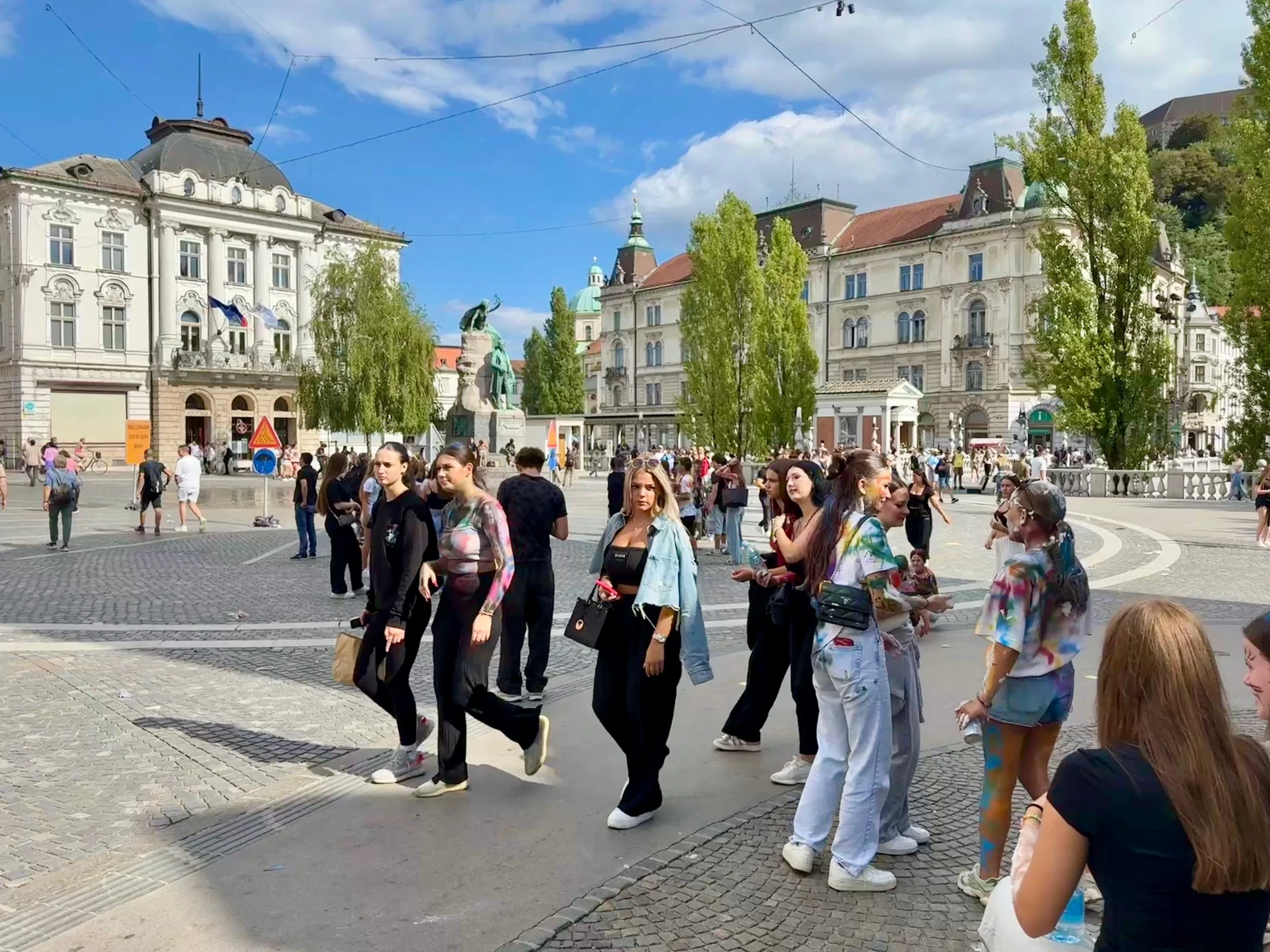 After the bank errand and having purchased our bus tickets to Bled, we walked back to the city center, passing more bands of colorfully sprayed teens and wondering how much poisonous paint each teen had absorbed.