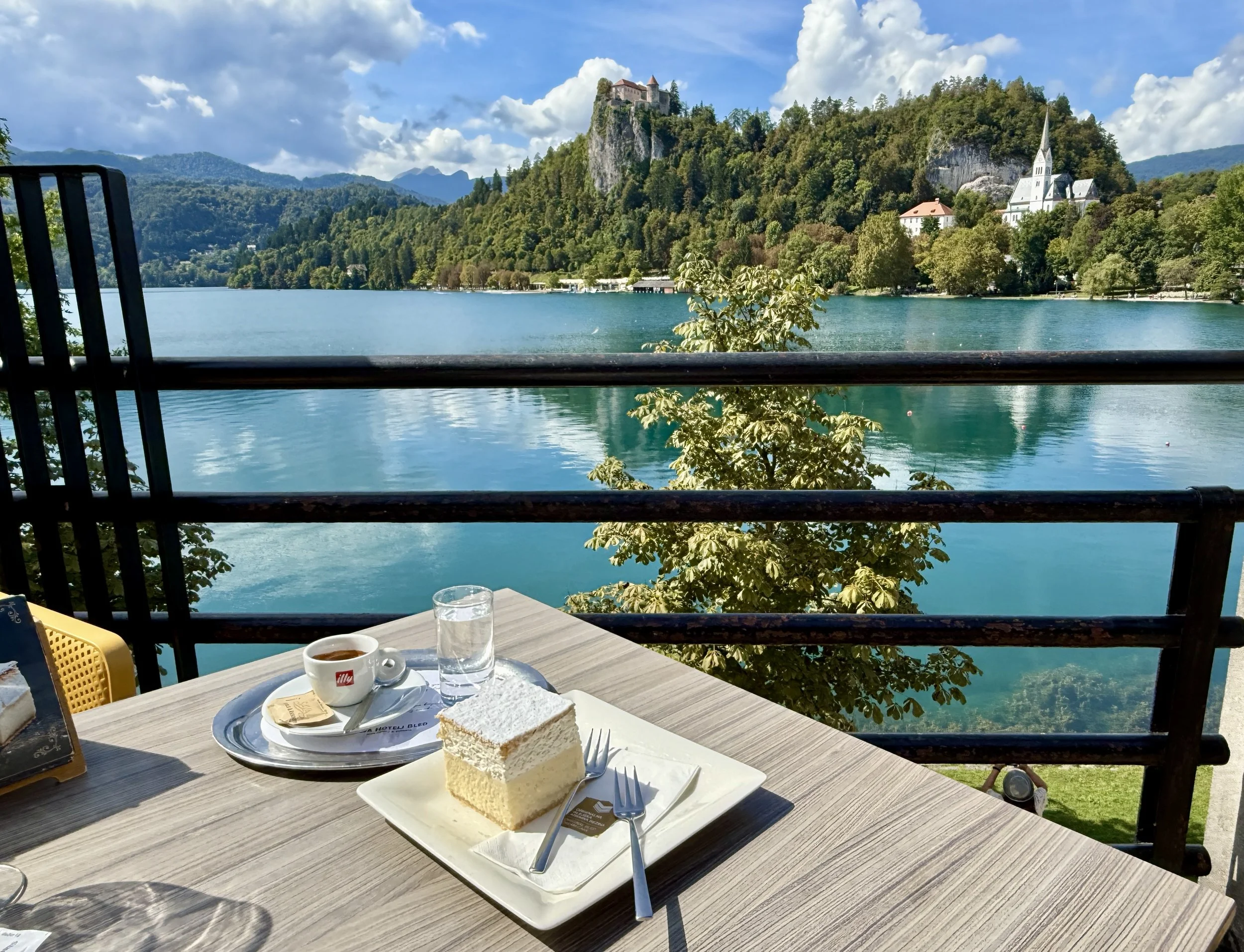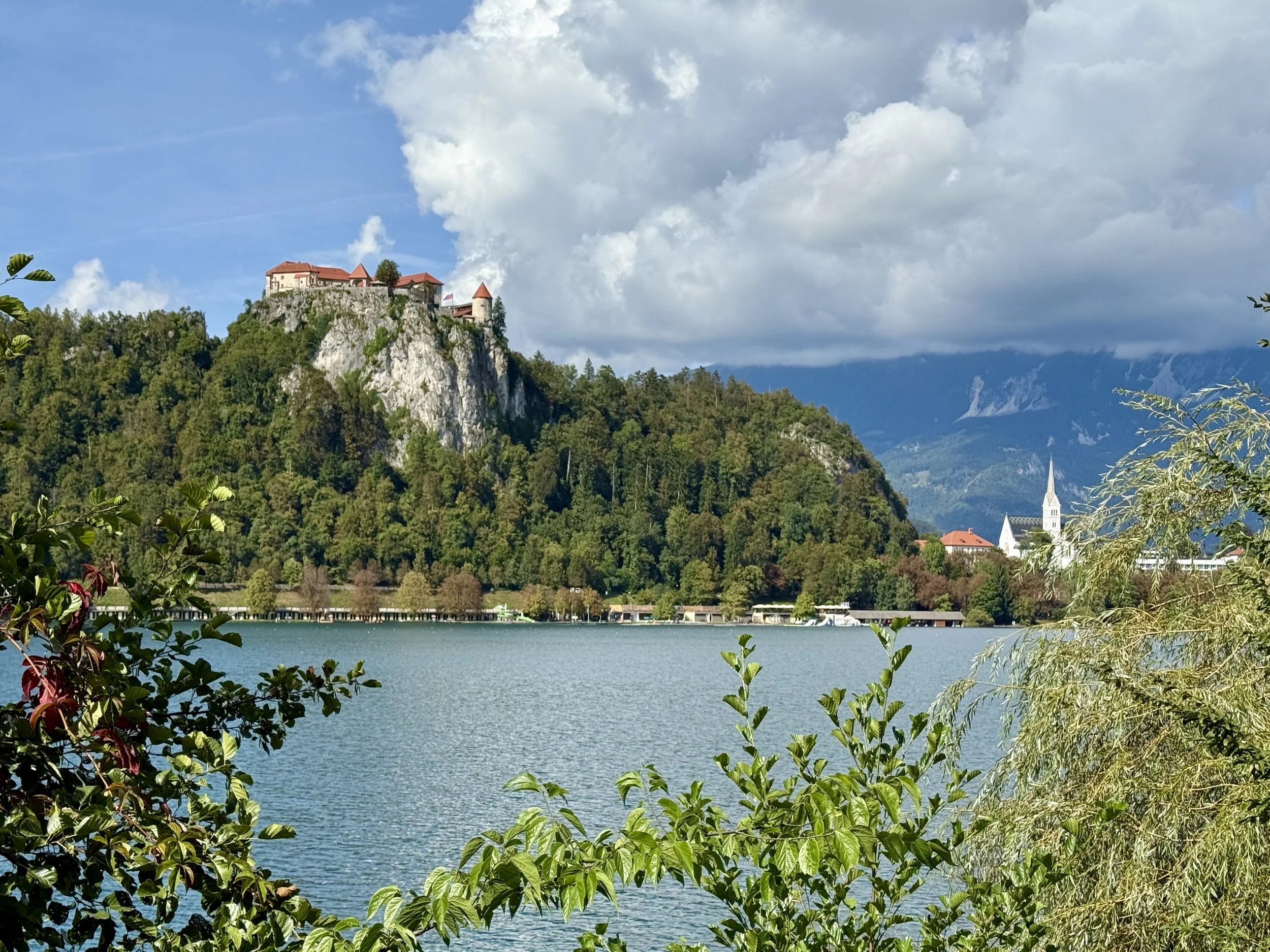 The town of Bled was just an hour’s bus ride away from the capital. Yet it seemed dreamily far away, with its pretty lake, flowered paths, and cream cakes. We walked around the lake, hiked to a higher viewpoint that turned out more challenging than we expected (and that was to be a taste of the hiking yet to come), and prepared our gear for our next adventure.