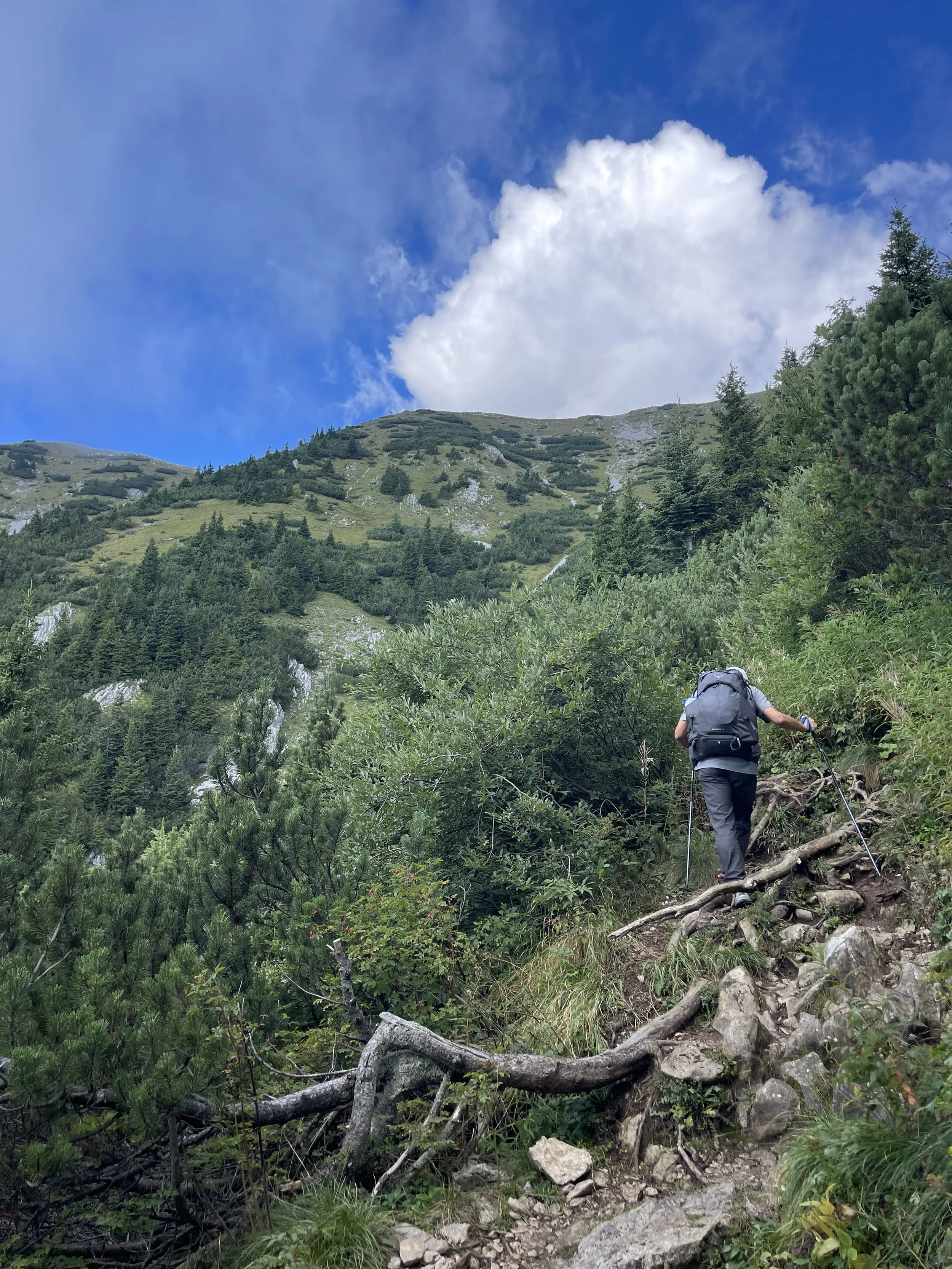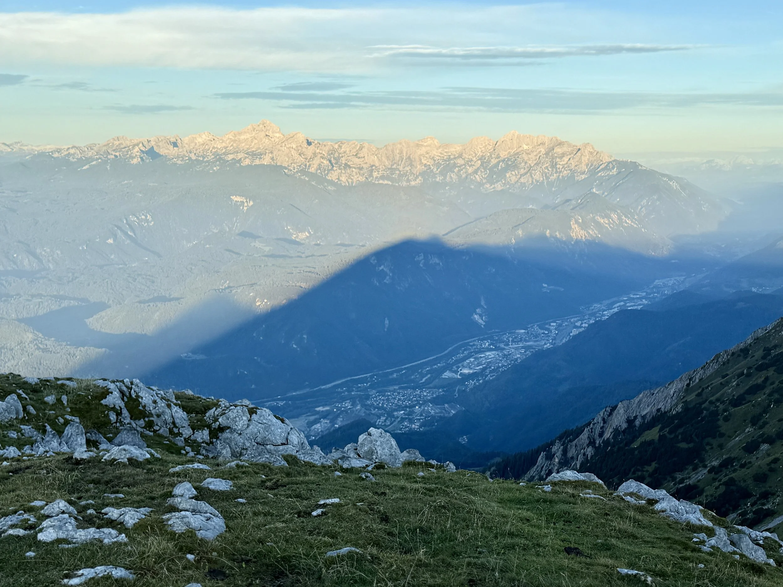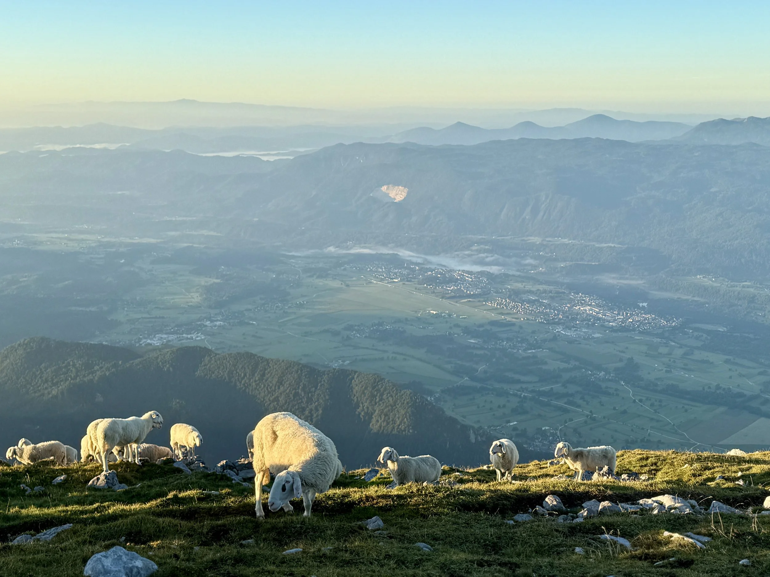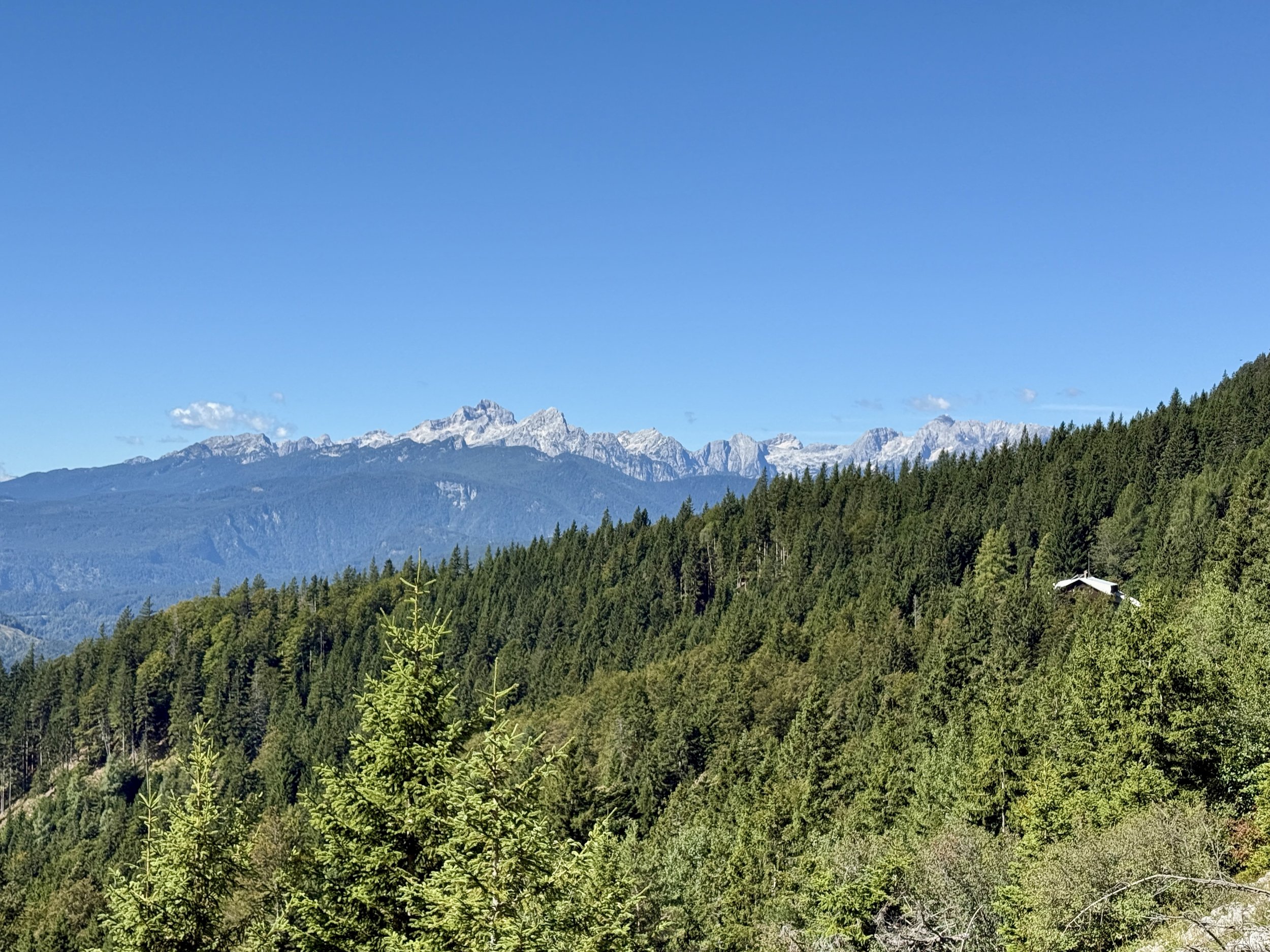 Only after leaving the hut and hiking another half an hour did the tree line finally break; we were then able to get a panoramic view of Bled and the mountains around Triglav.