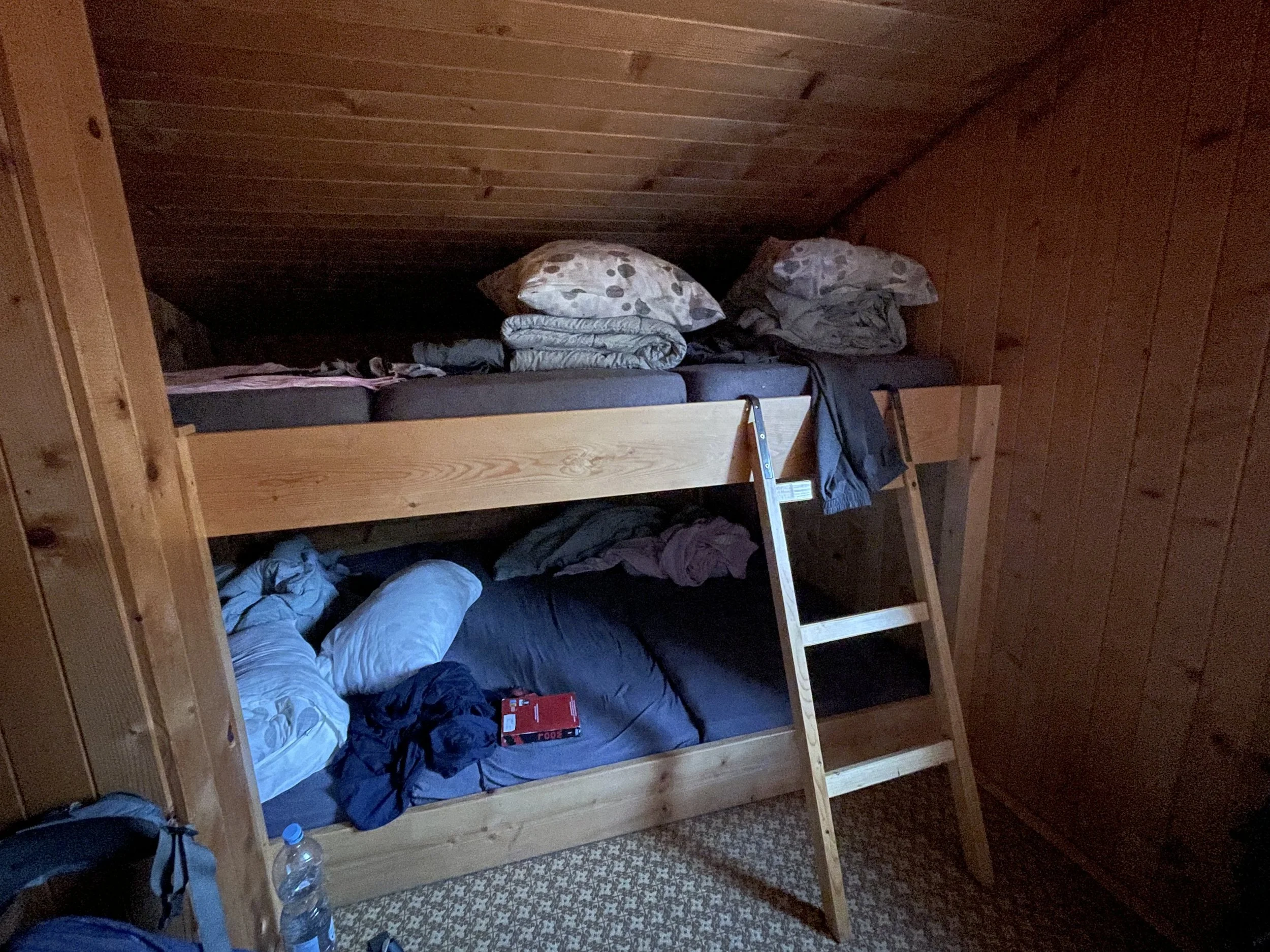 We were assigned to sleep in the same room as that young American couple — two platforms were built into the wall in a small room. Because they were larger and taller than we, we volunteered to sleep in the upper platform because it had a sloping roof that made it very tight.