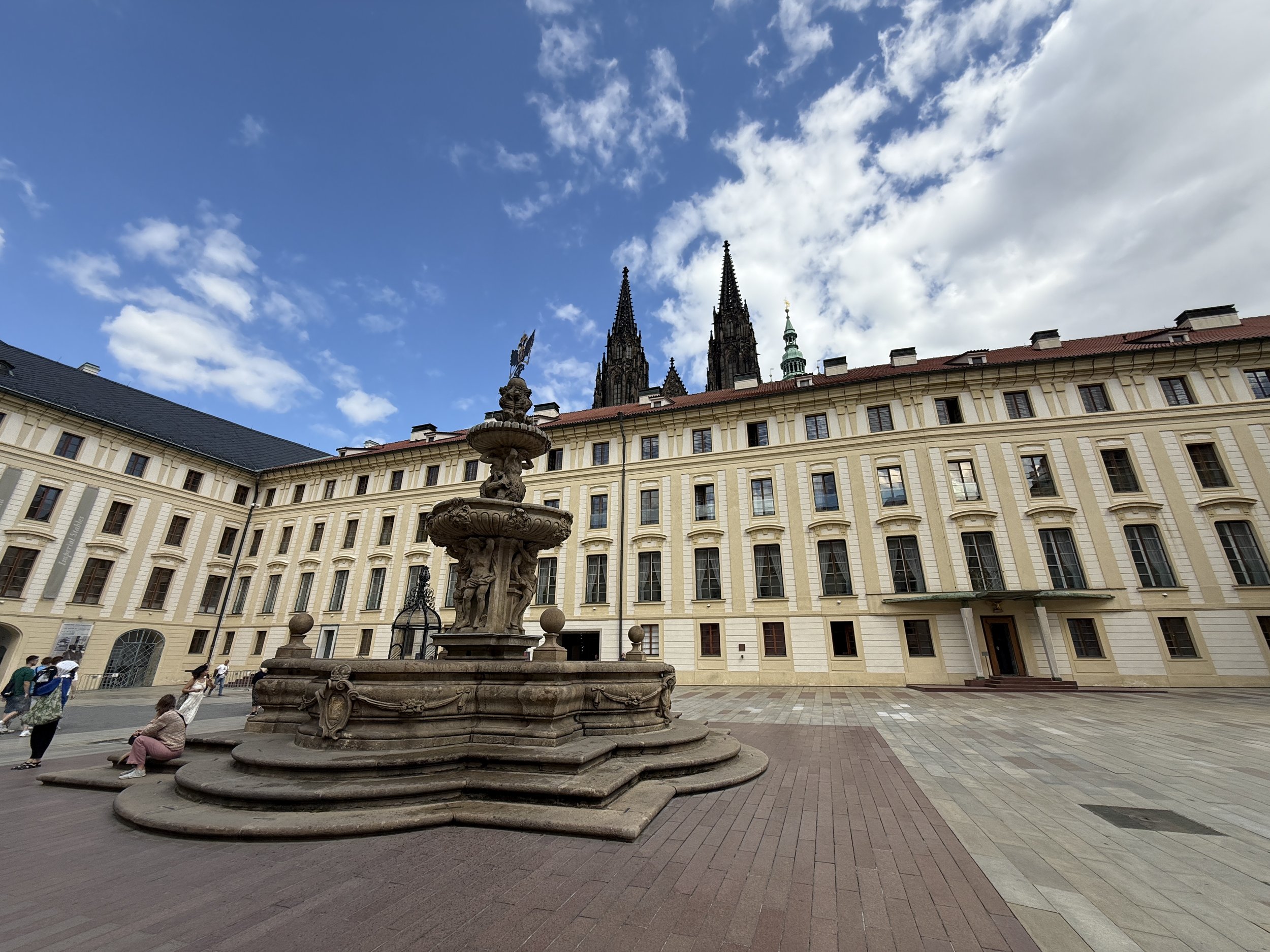We had lunch — N. had Czech goulash for the first time — and headed like martyrs to the grounds of Prague Castle, to join the mobs there. We checked out: