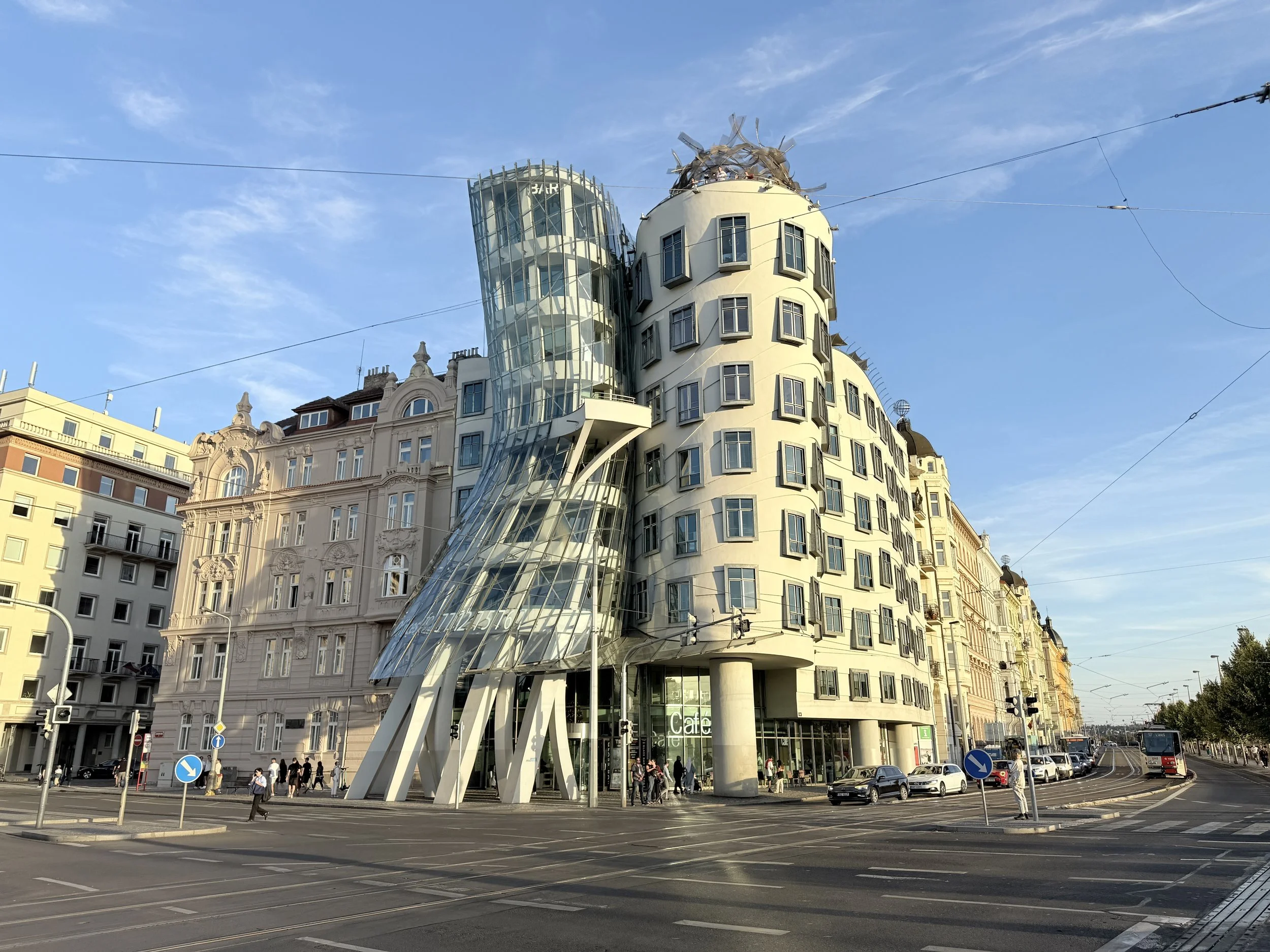 — the House at the Black Madonna. I forget now the reason for the Madonna’s color; more significant was the building itself, important in the history of architectural Cubism. Although we didn’t venture inside, Daniel mentioned that all the decorative details in the building were cubes, including the desserts served in the building’s cafe.