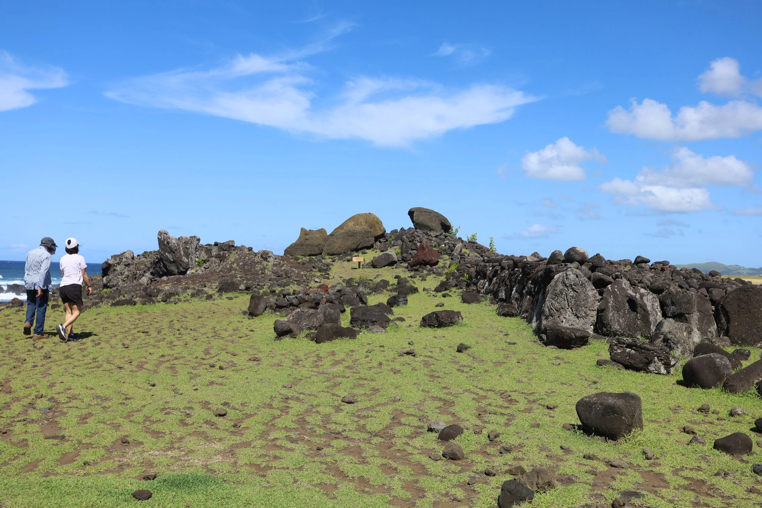 Ahu Akahanga — surviving relics of a Rapa Nui settlement where we saw the leftover footprints of a boat house and chicken coop.