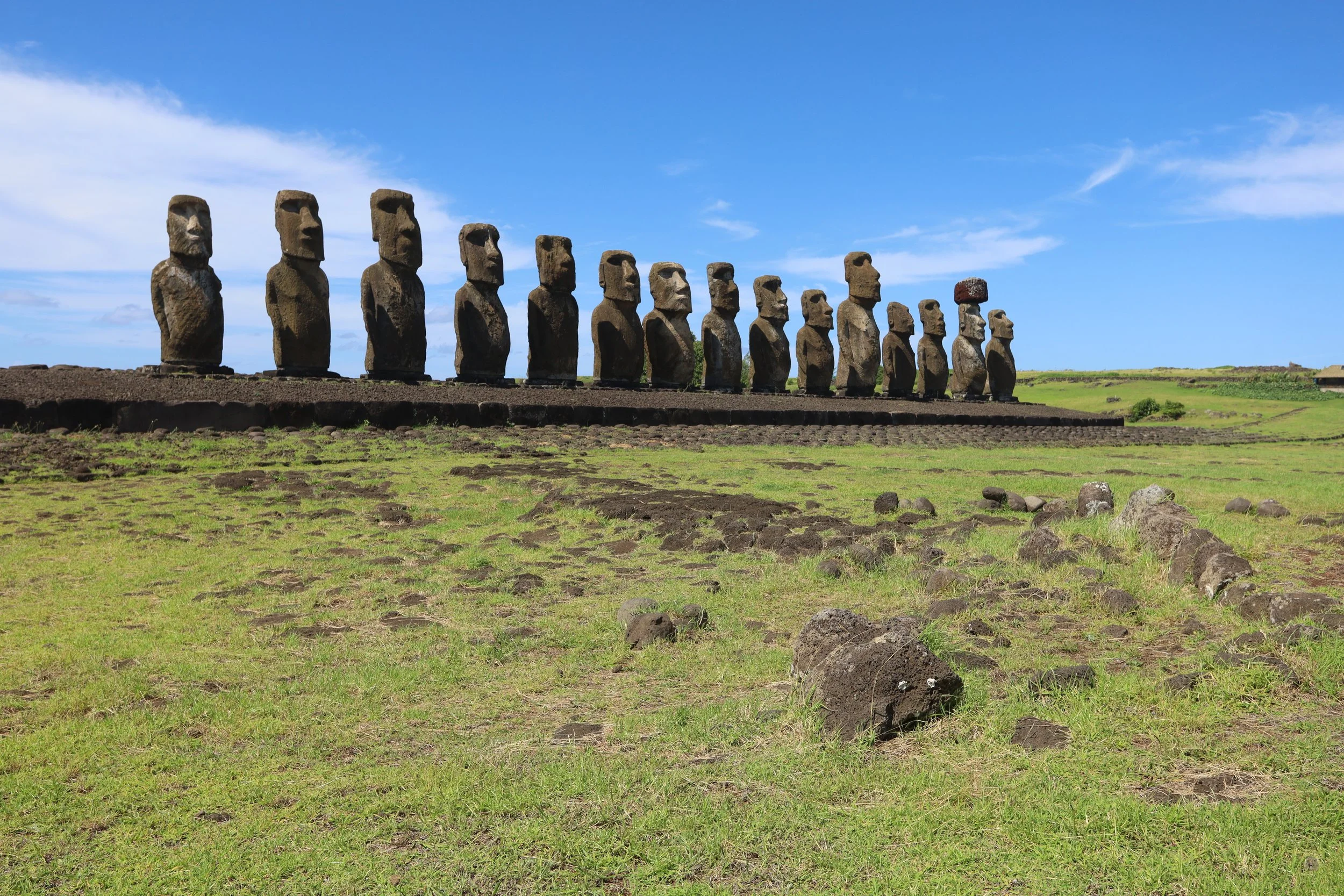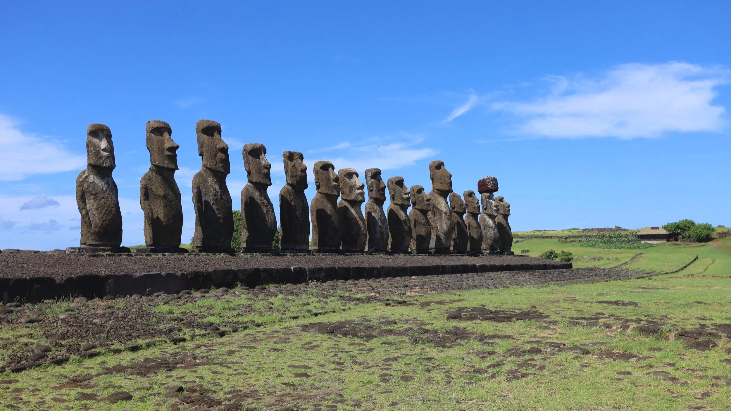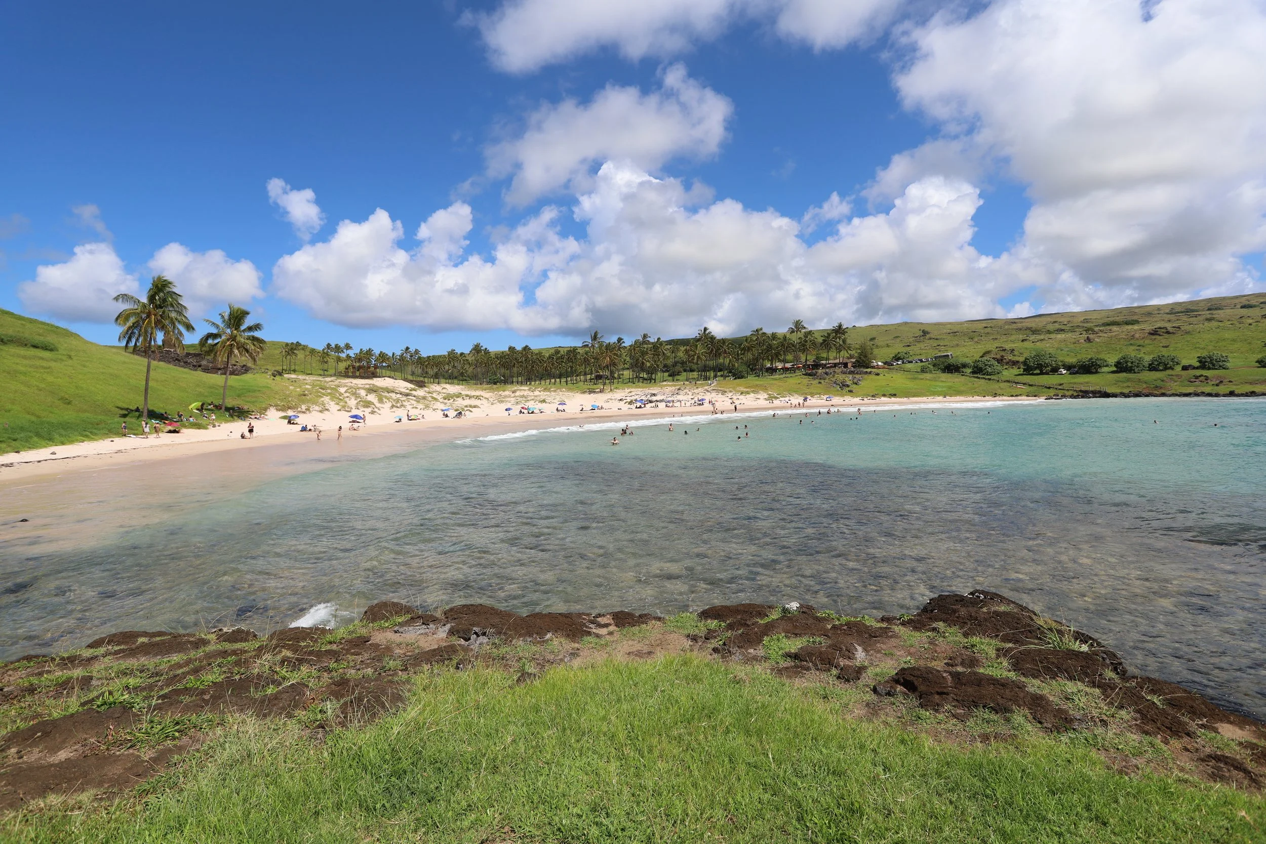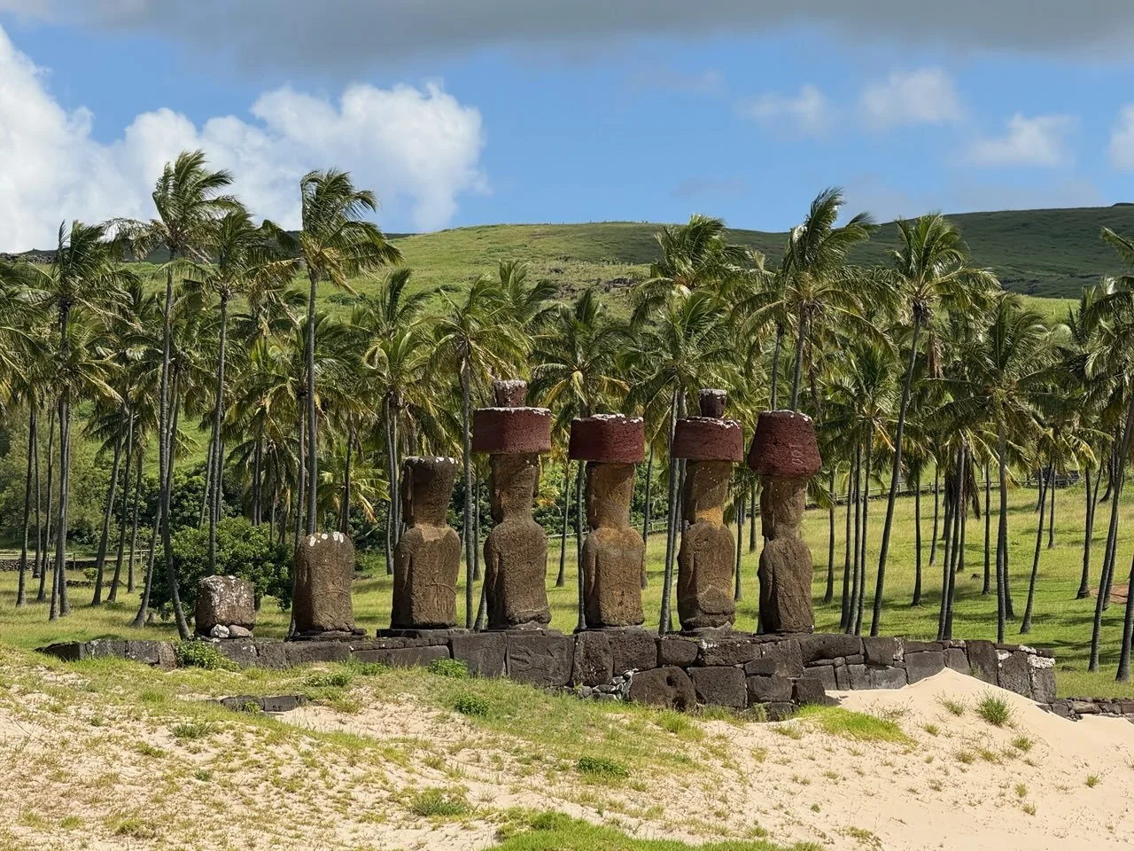 Anakena — the moais who scored on the “location, location, location” angle. Pretty little sand beach