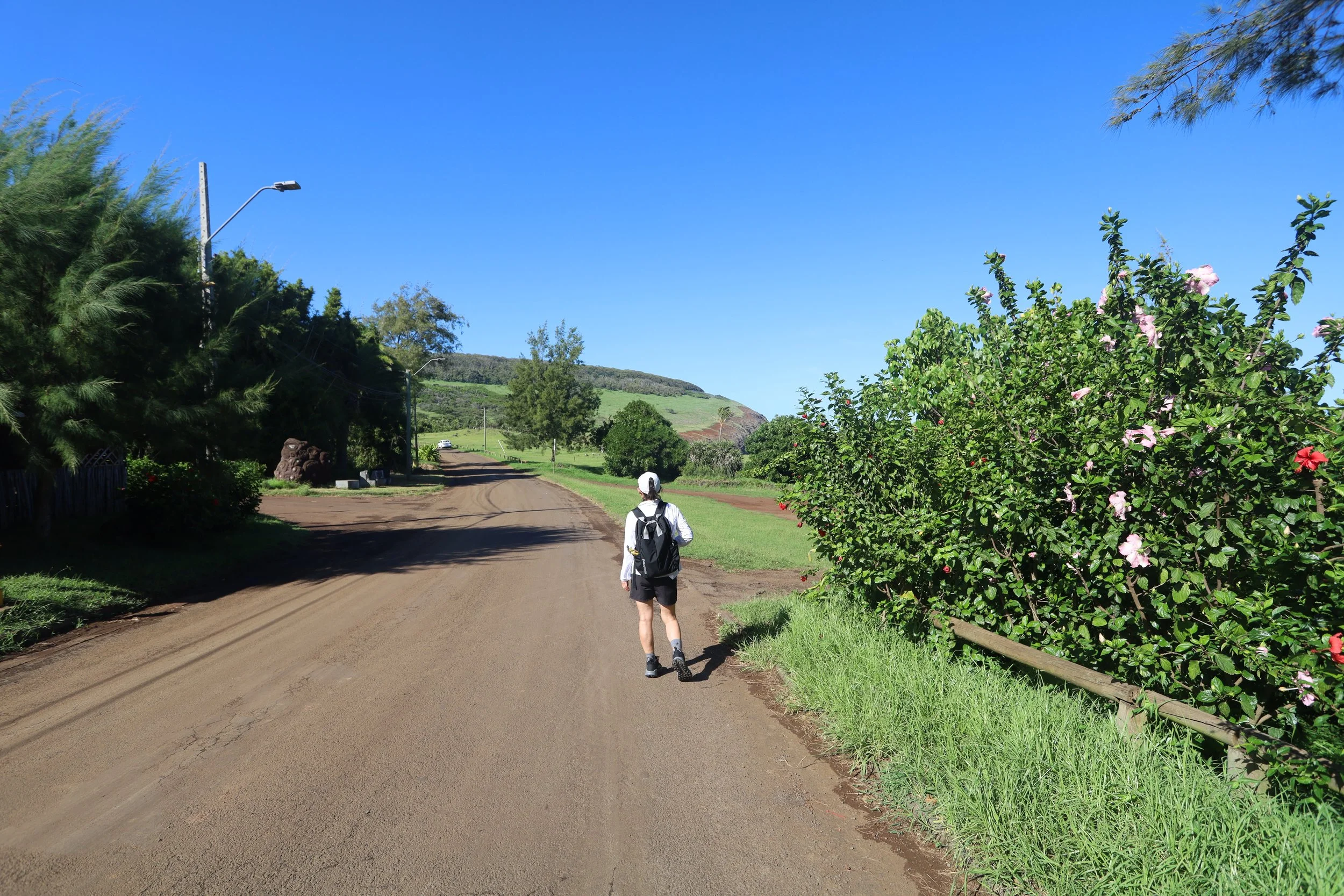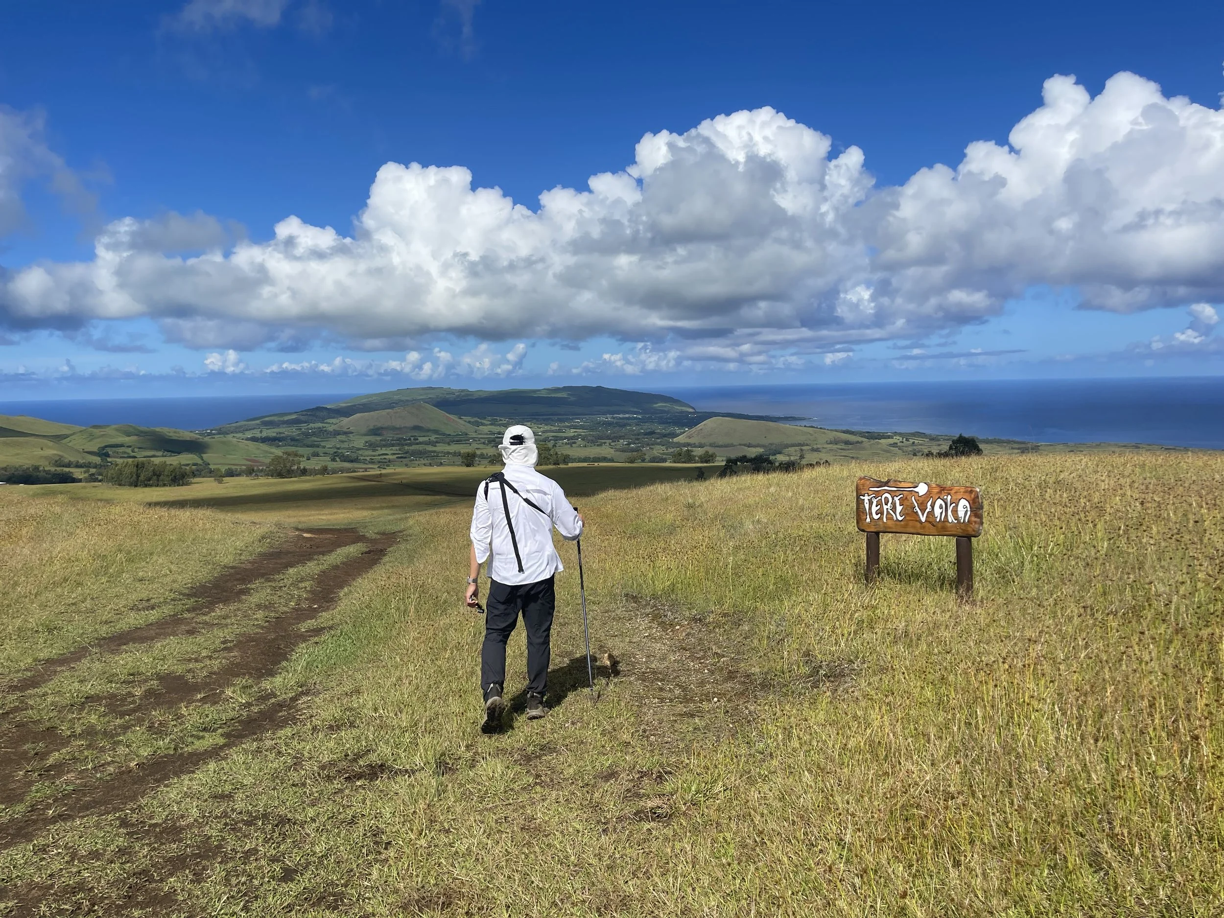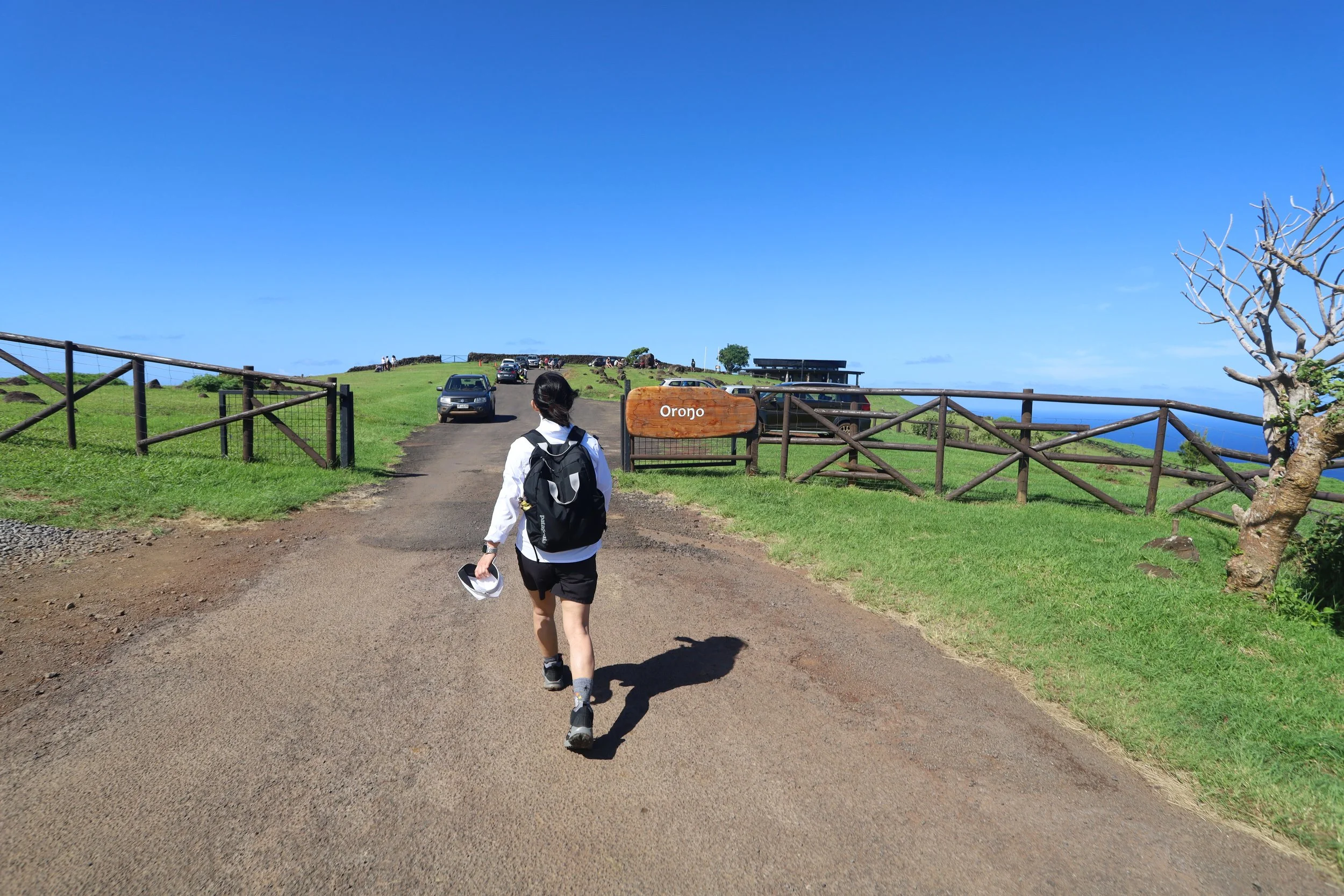 After breakfast, we packed our backpacks — water, hiking poles, battery pack — and walked a mile from our hotel to the trailhead of Rano Kao.