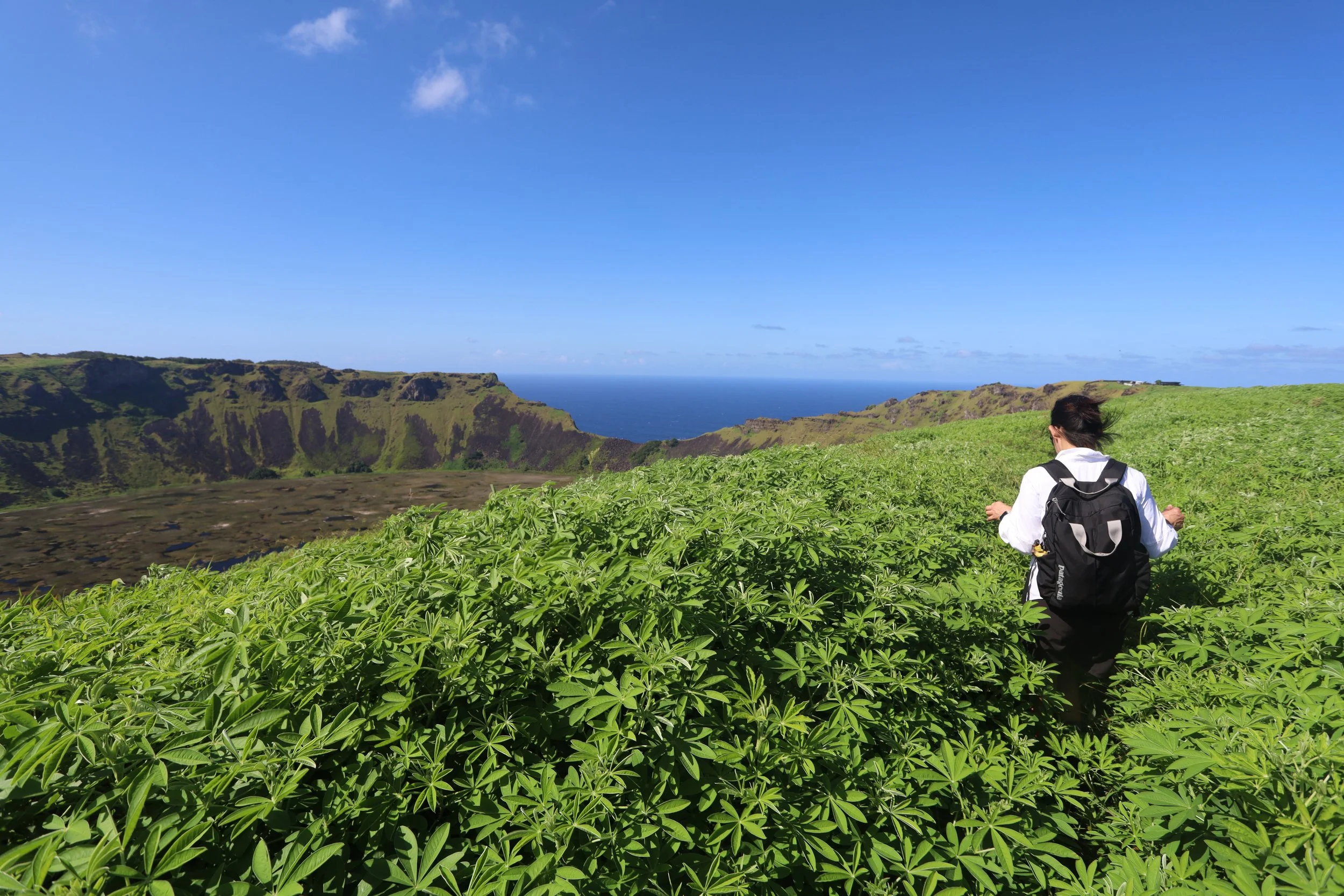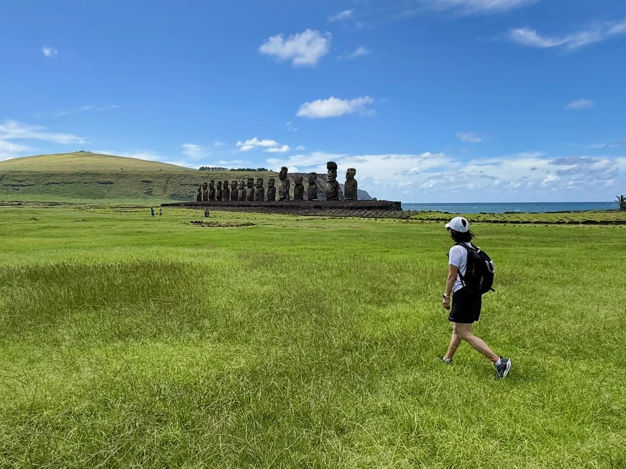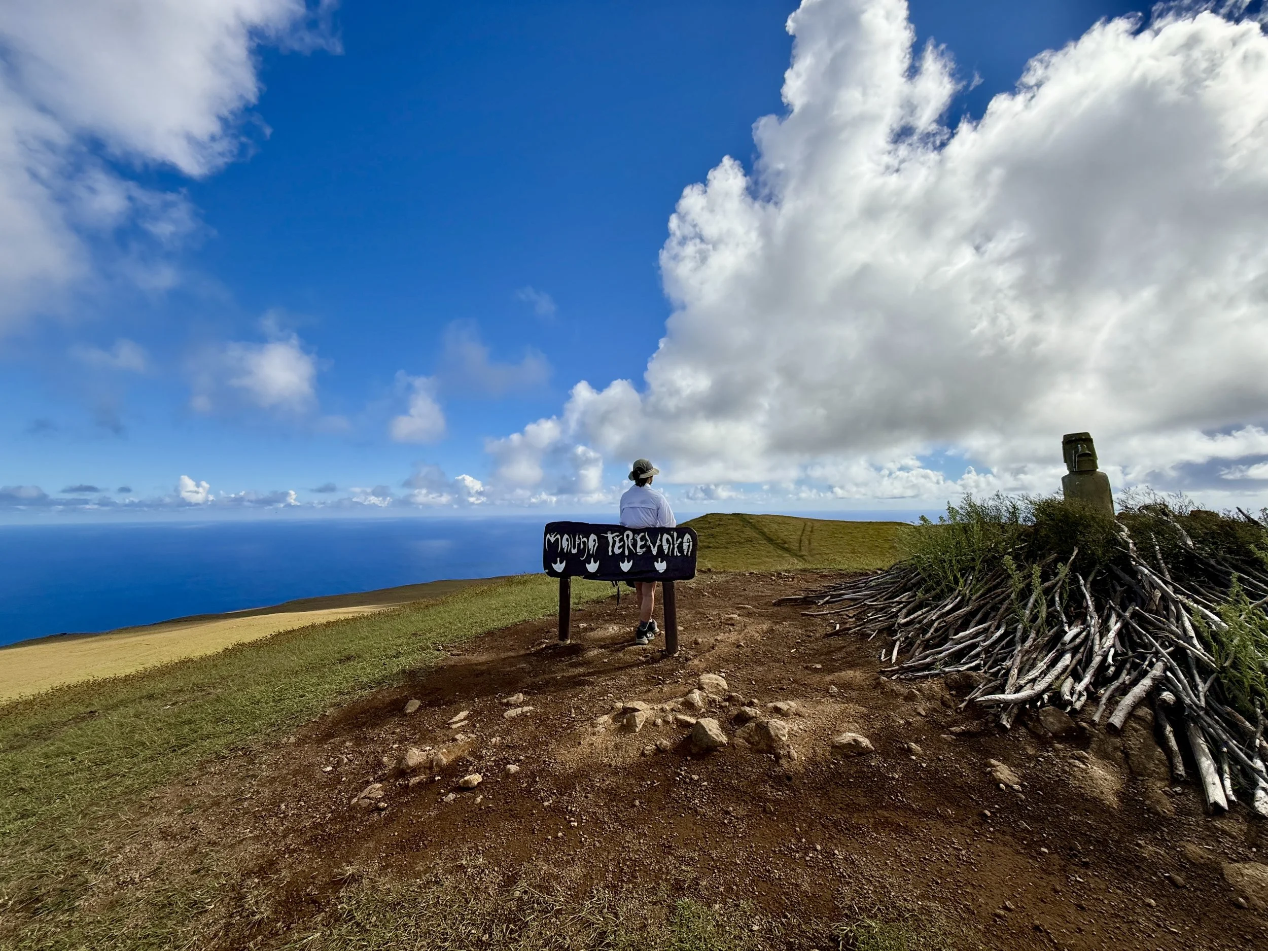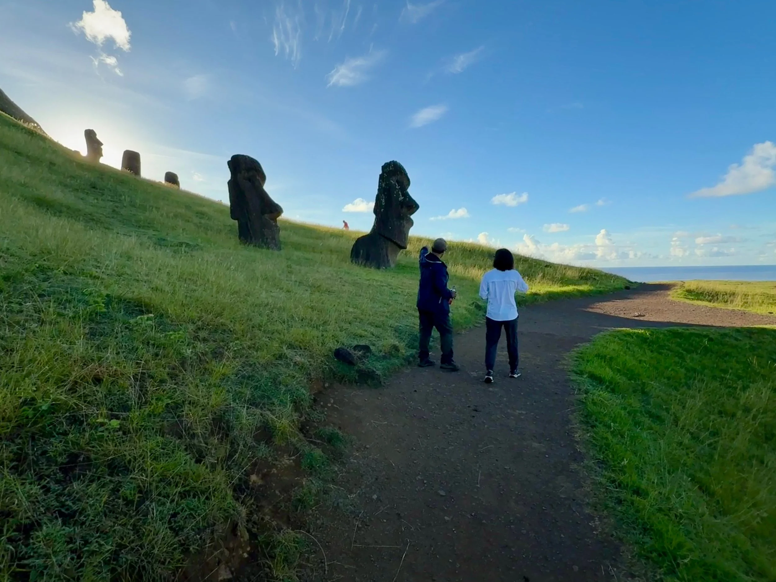 After breakfast, we packed our backpacks — water, hiking poles, battery pack — and walked a mile from our hotel to the trailhead of Rano Kao.