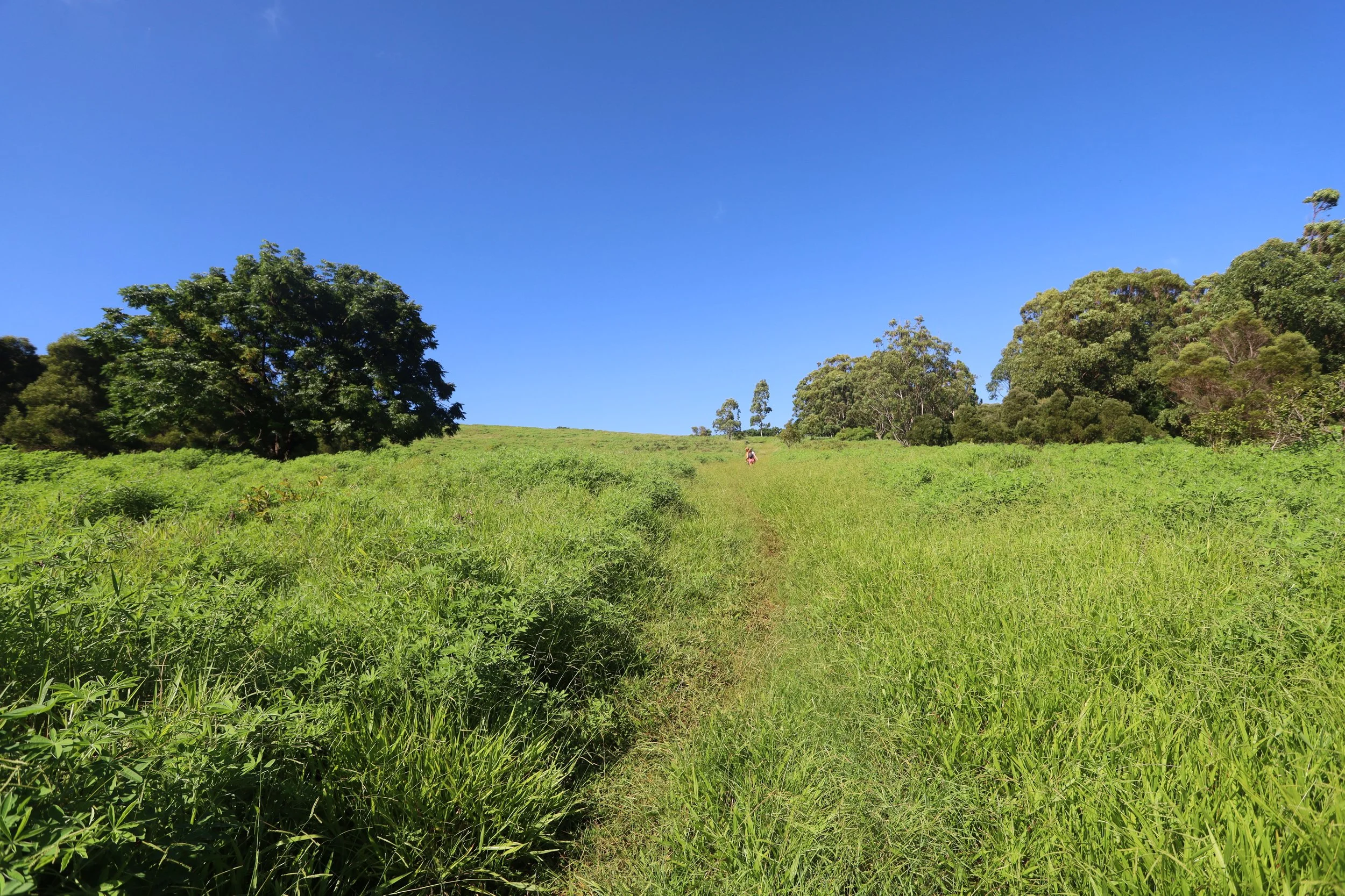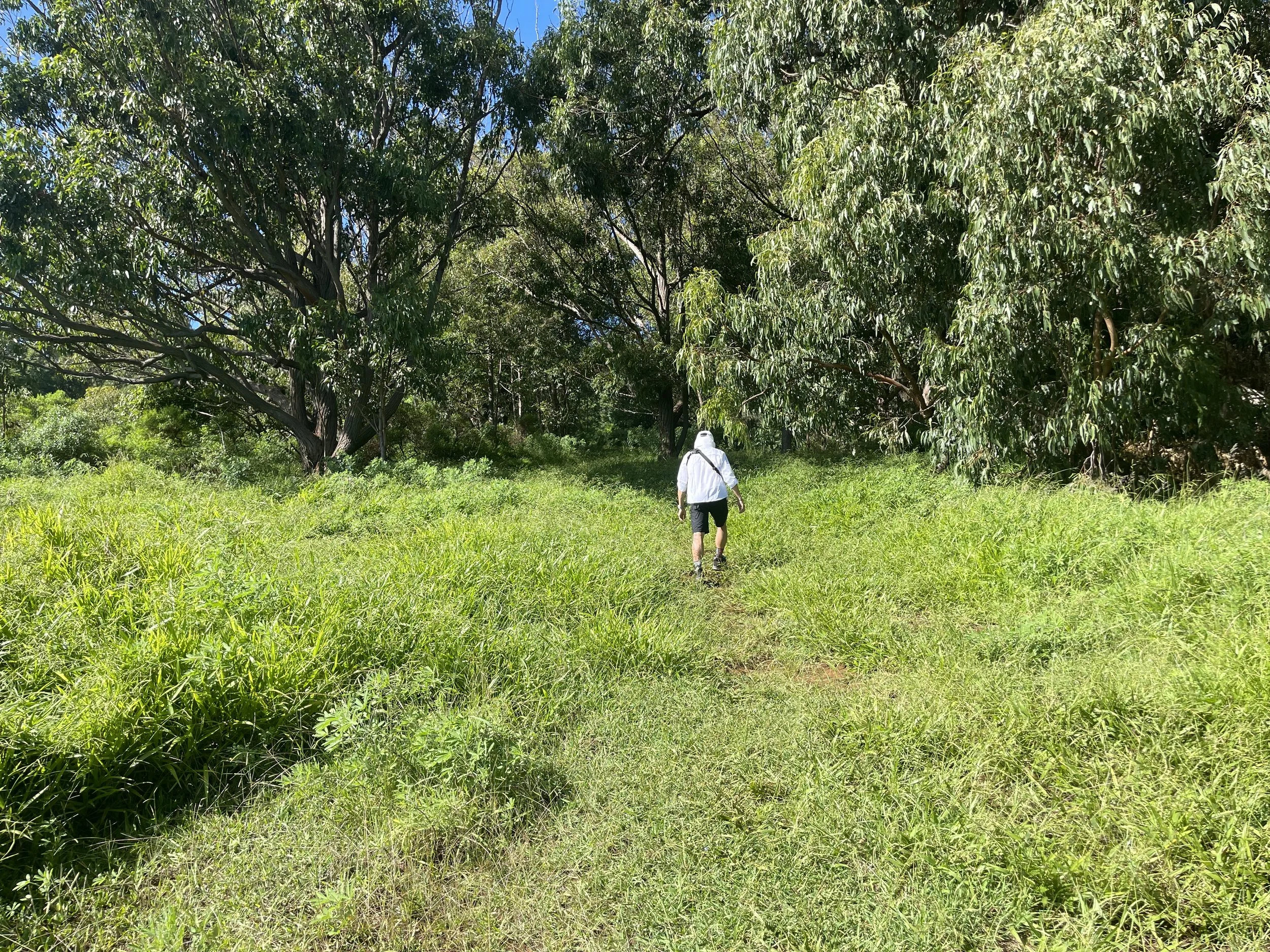 The trailhead, by the offices of the Rapa Nui National Park, was set off by white rocks, just as described by the trekking app. Beyond the first few feet, though, the grasses and plants on either side of the trail had grown so much that the thought crossed my mind that I should also have packed a machete as well. It would have been difficult to find the correct path without the GPS on the app.