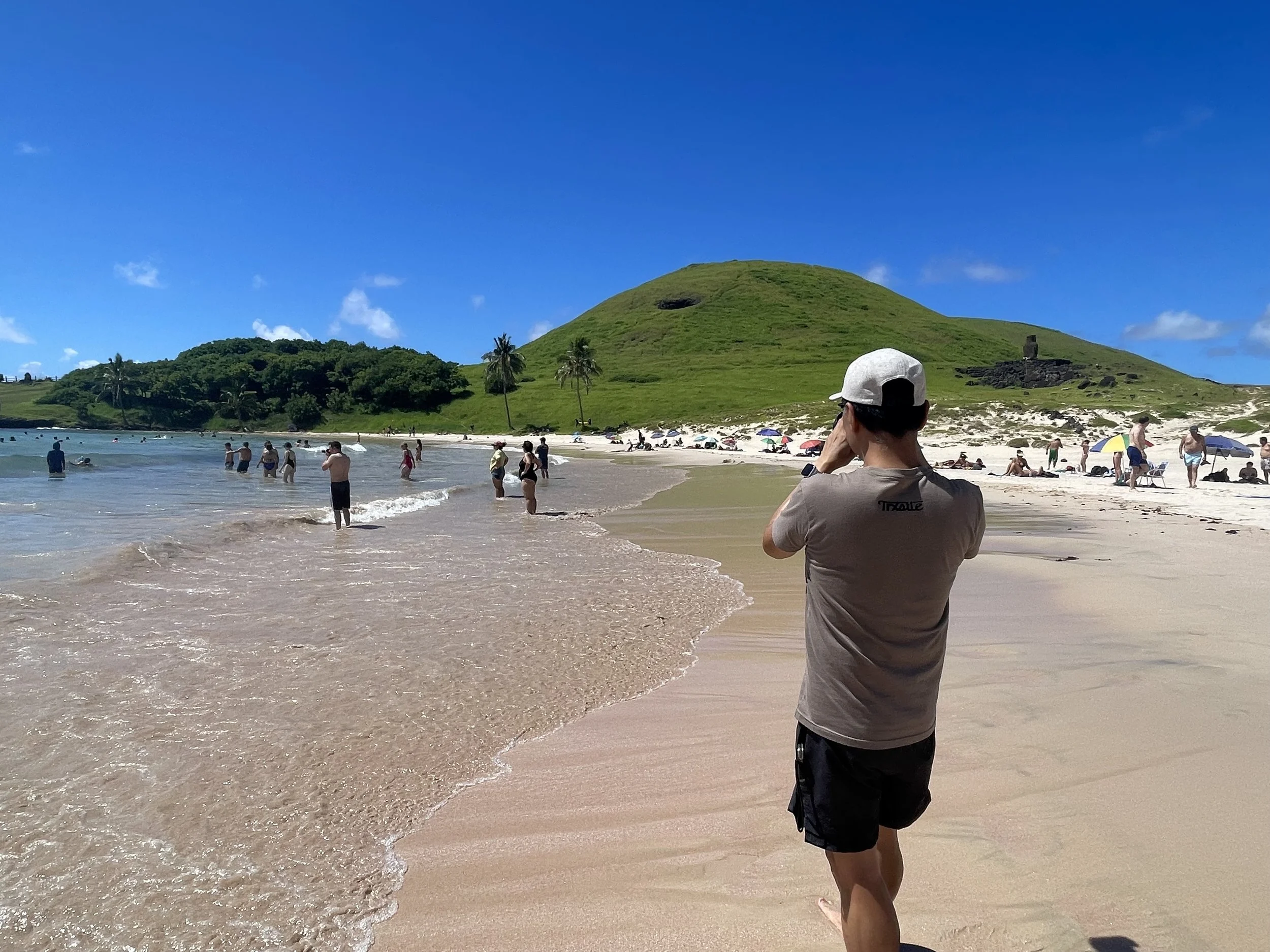 Afterwards, we caught a taxi for Anakena, this time not for the moais, but honestly so N. could collect something — ahem — for his collection.