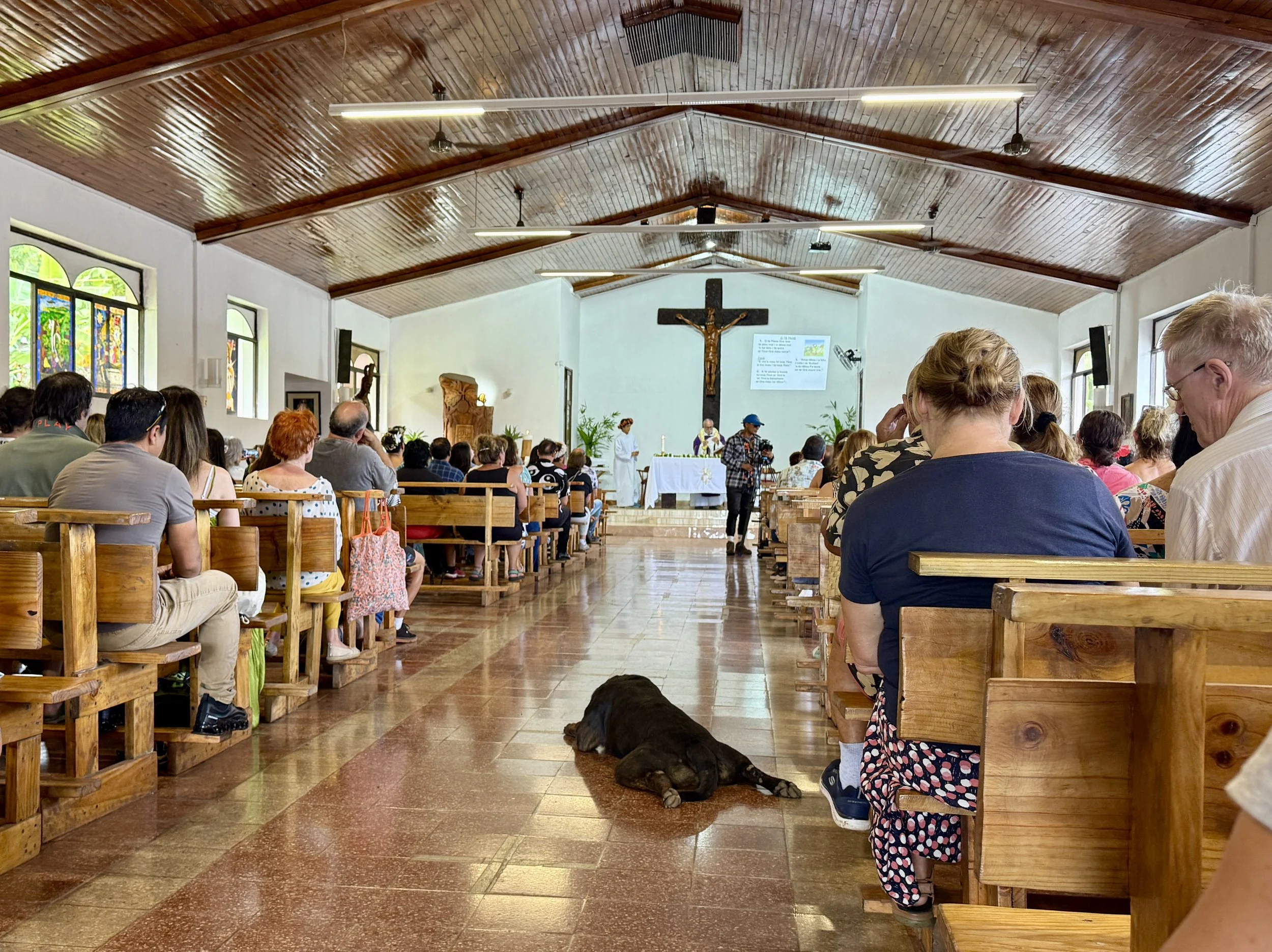 In the Parroquia de la Santa Cruz, the Catholic mass added that island flair through the hymns which were arranged for drums and ukeleles and sung in Rapa Nui. Even a dog lazily came in, halfway through the sermon, to enjoy the blessing of a cool floor.