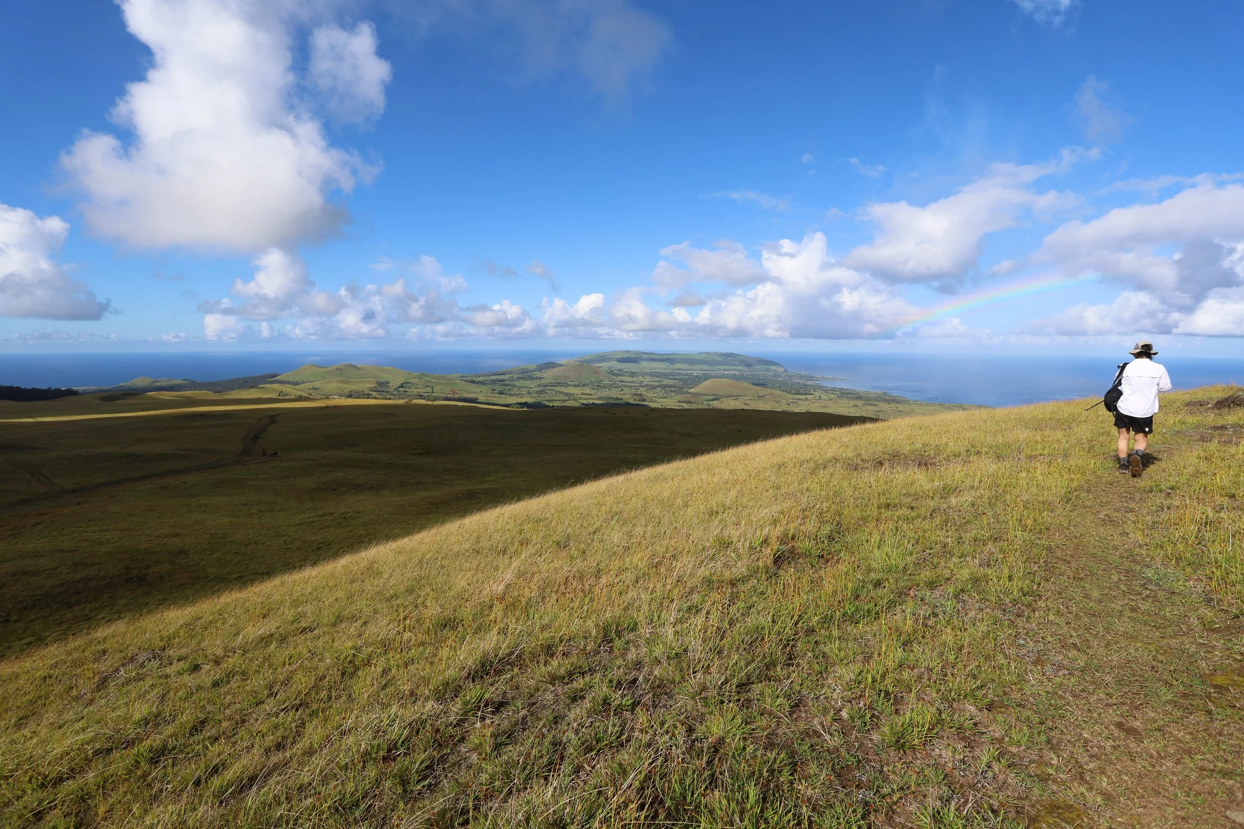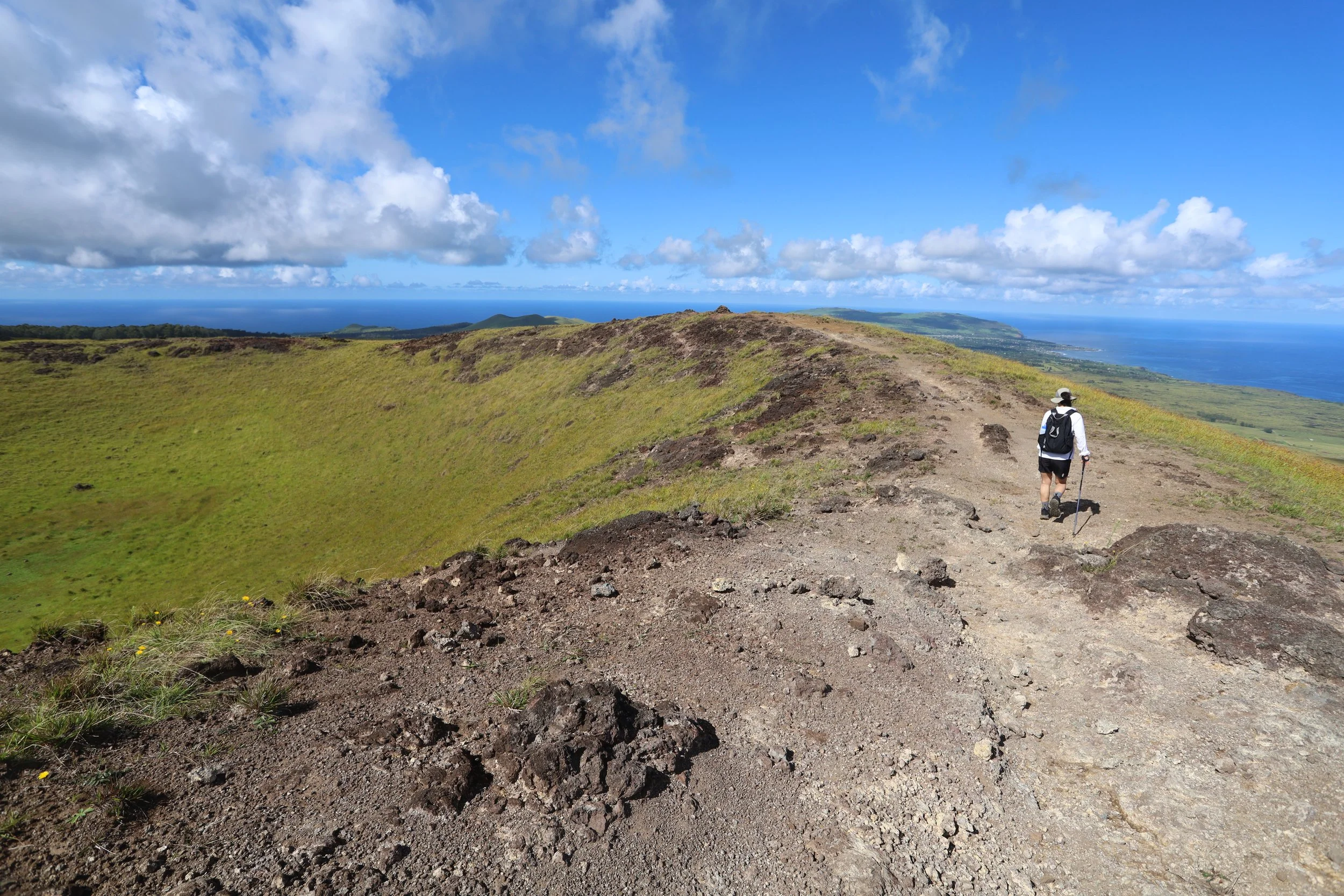 The hike to Mirador Rano Kau is one of two hikes tourists can do without a babysit… , uh, guide. The hike to the highest point on the island at Terevaka is the other.
