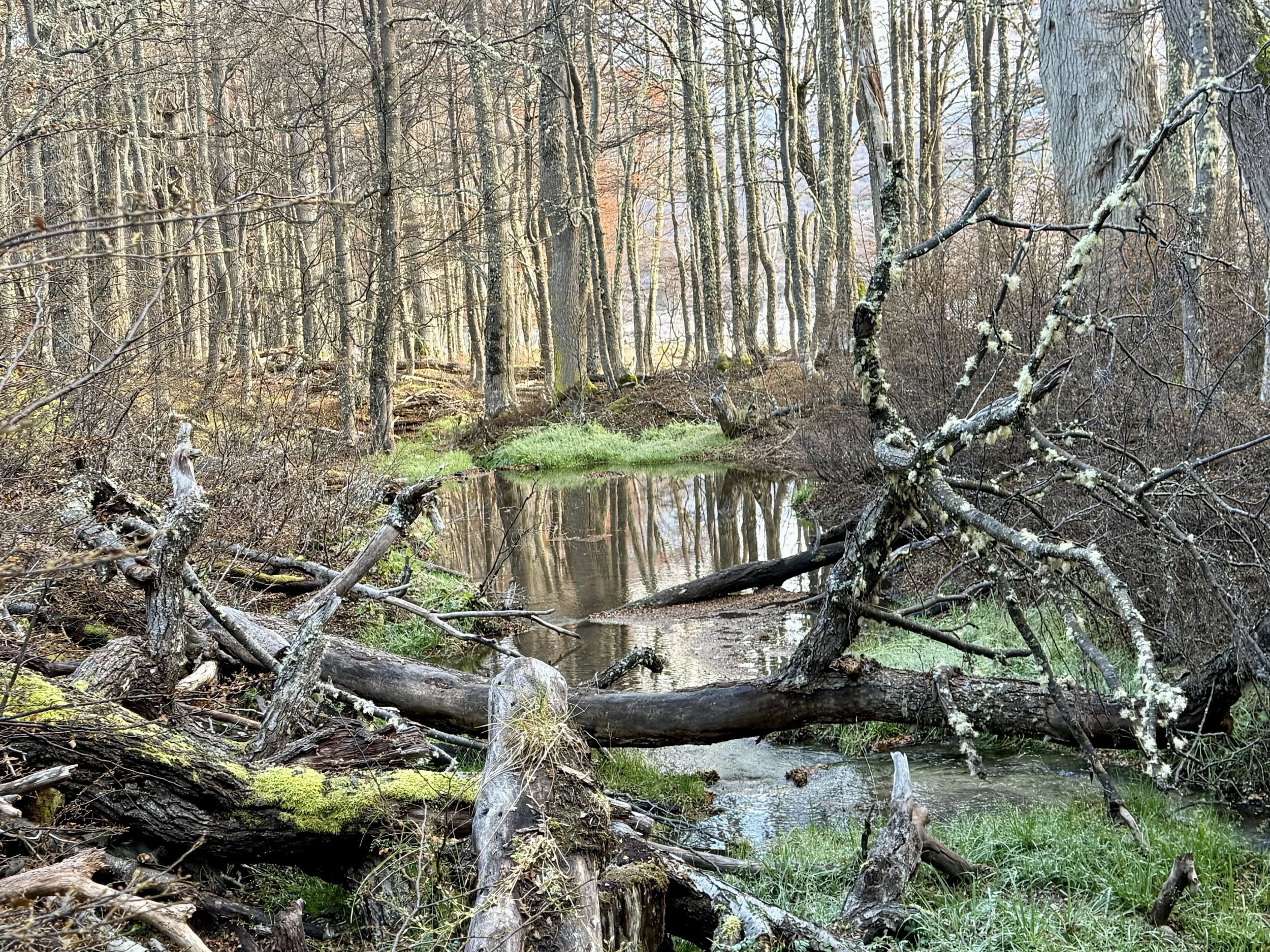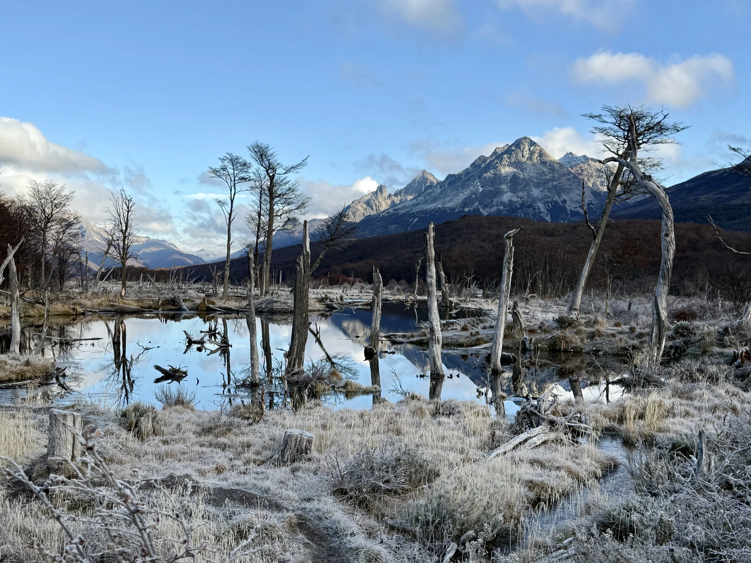 My hiking app next showed a “waterfall”, but I didn’t realize until later that this was a reference to a dam built by the resident beavers in the area. From listening to a group hiking with a guide (I know, I’m an informational leech), I learned that the beavers had been introduced by the government to try to spur a fur trade in the area, but the consequences had been both myopically unforeseen and ecologically disastrous — but aren’t they always? How many times has this same story played out in other parts of the world? I read later that the beavers introduced from North America had no predators in the area, and their natural instincts to build dams had devastated the trees in Tierra del Fuego — so, you know, the fin del mundo for the trees in El Fin del Mundo.