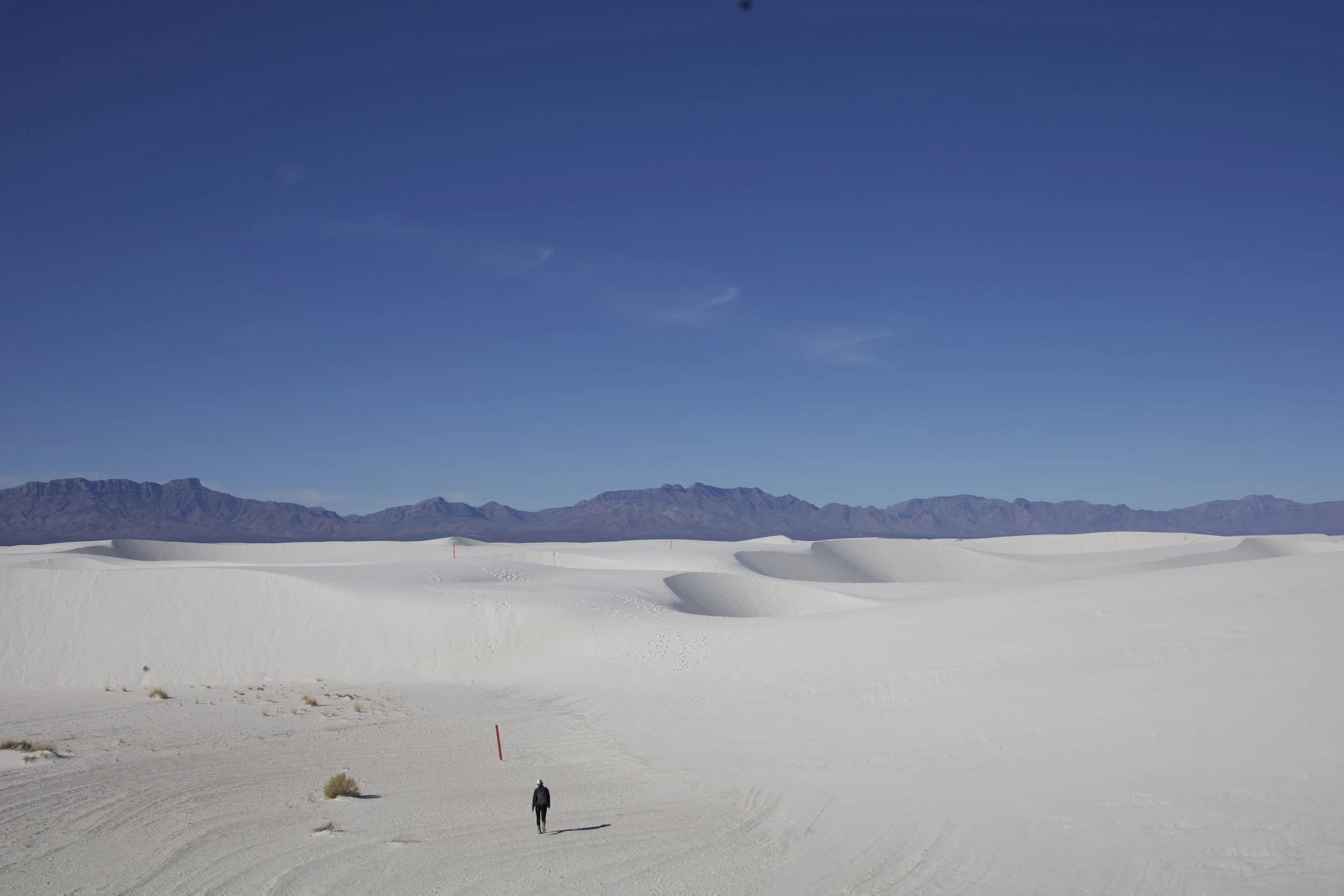 We would have to go back to Miramar Beach in Florida, track down one of those beach scavengers with metal detectors, and bring them to White Sands National Park. We tried not to hyper-ventilate as we retraced our steps and squinted into the horizon. Where to begin?